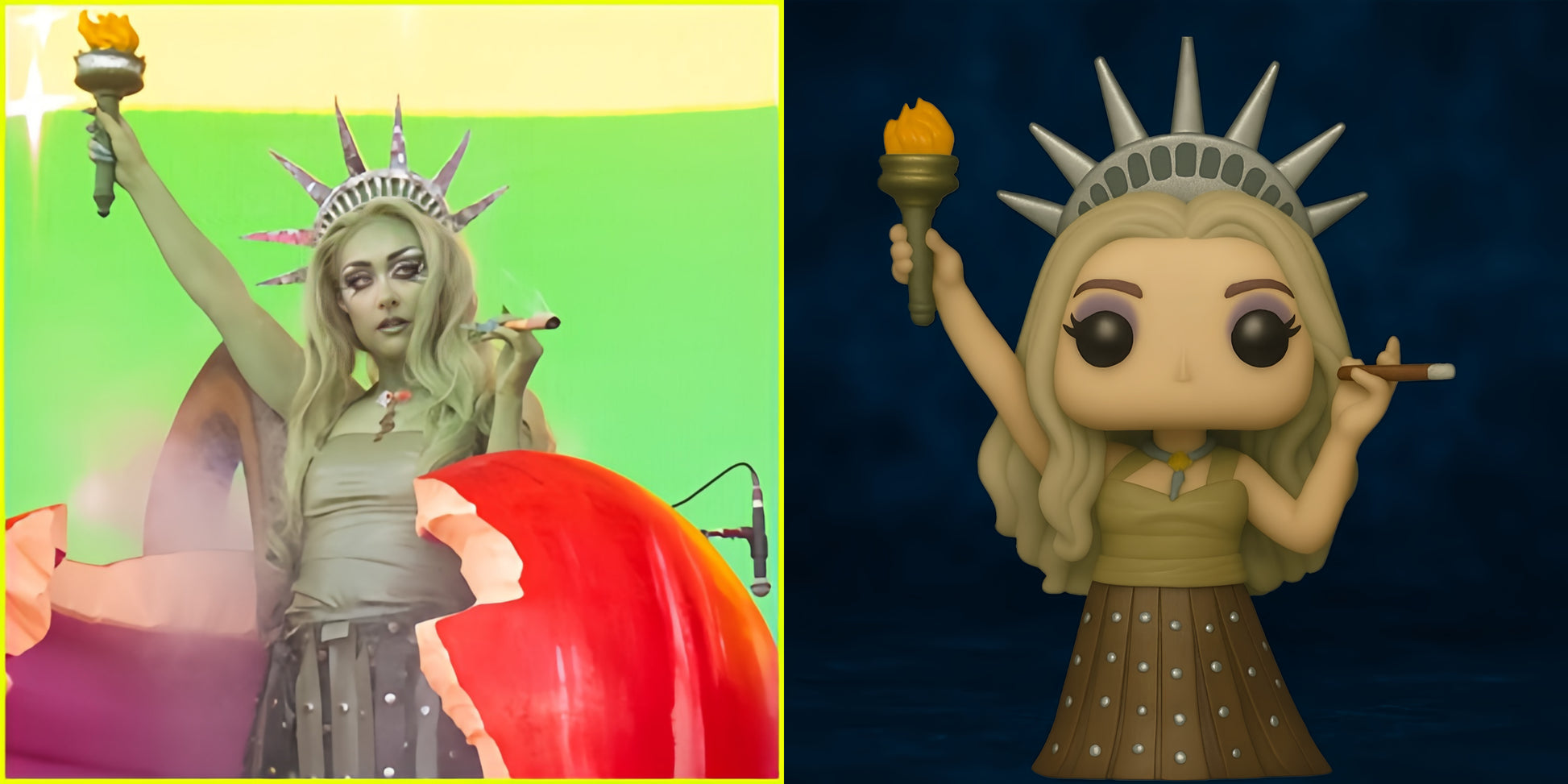 This figure immortalizes her unforgettable “Statue of Liberty” performance look, where she rose like a phoenix from a giant apple — celebrating pride, freedom, and individuality.