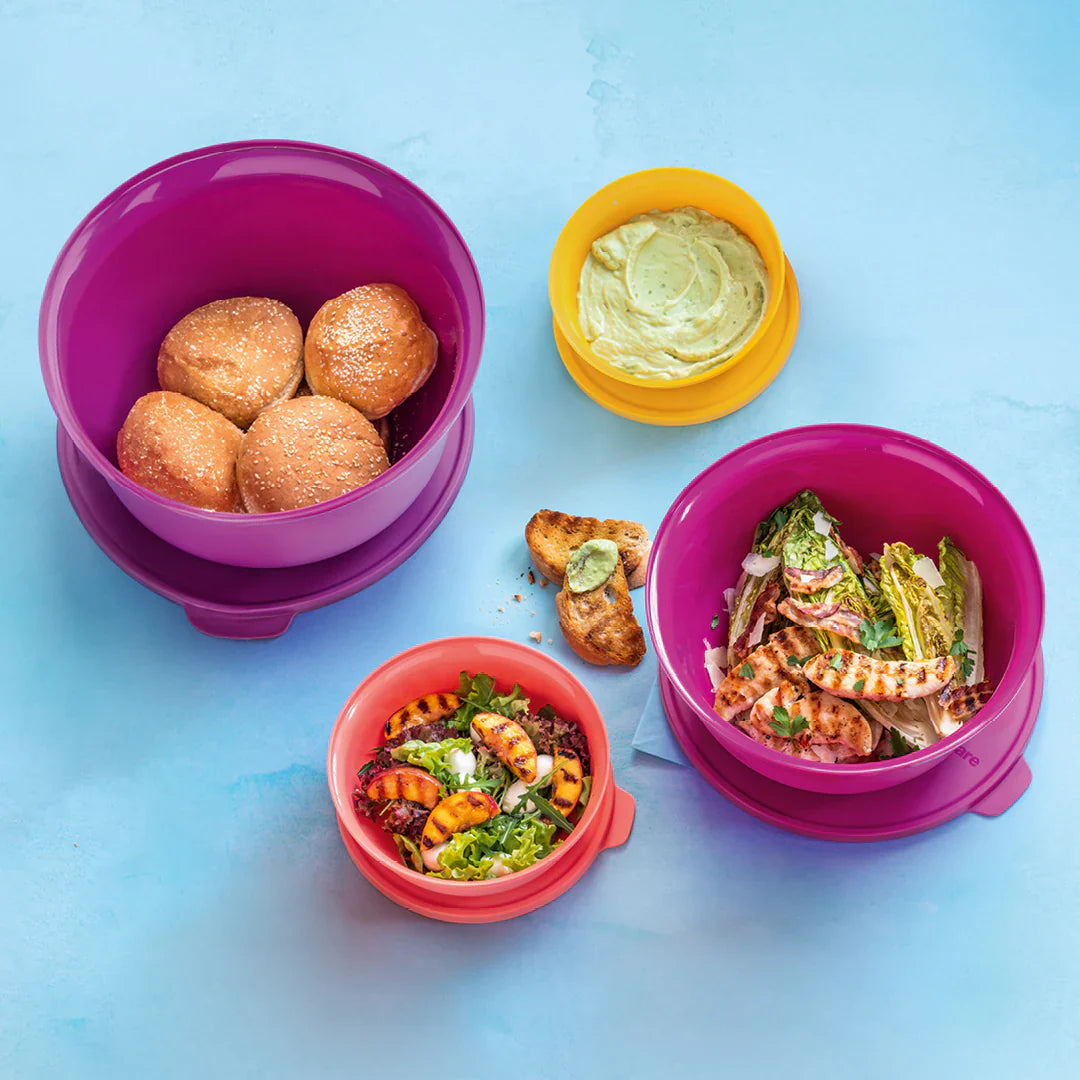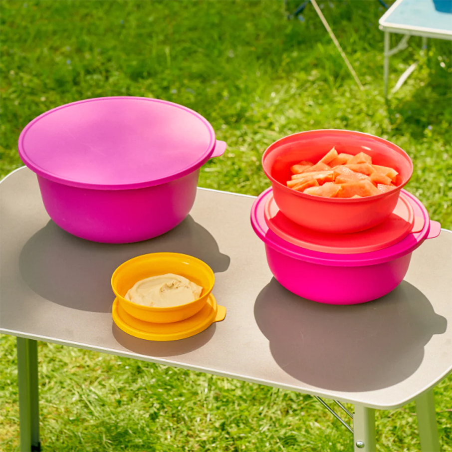 The Aloha bowls are great sizes for packing salads, fruit and bread rolls for serving indoors and outdoors and can be sealed to store and stack in the fridge.