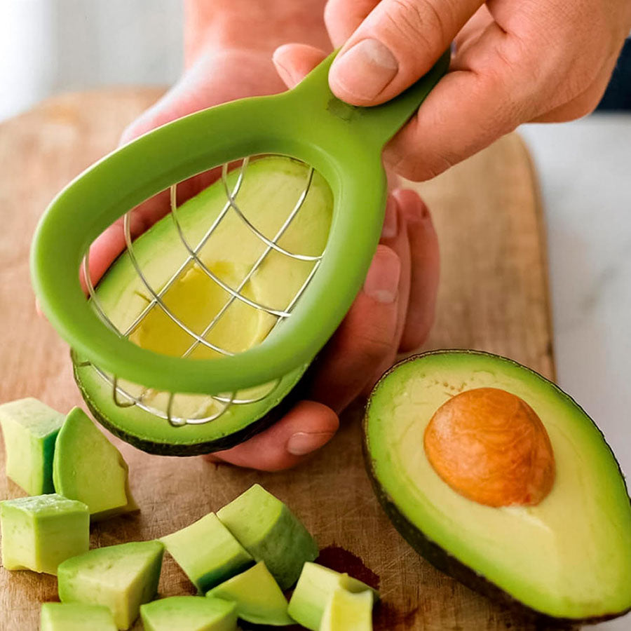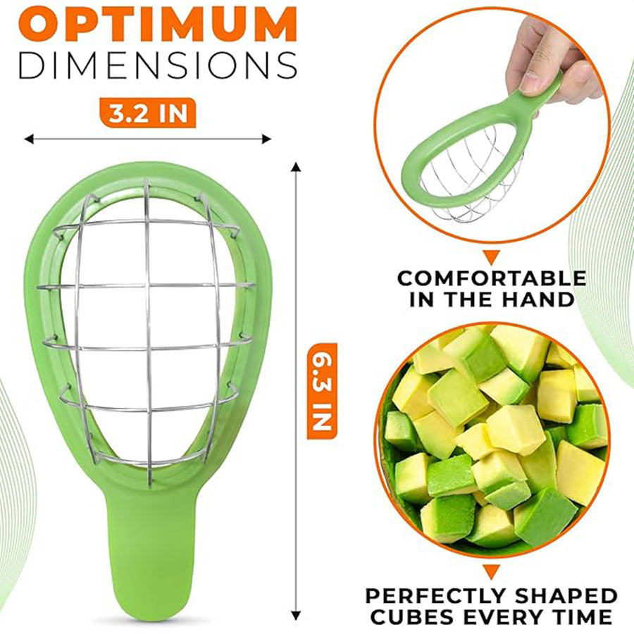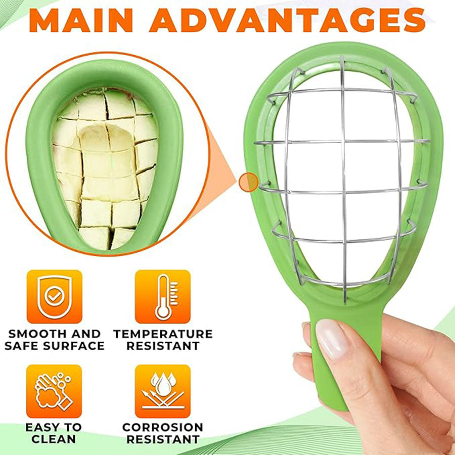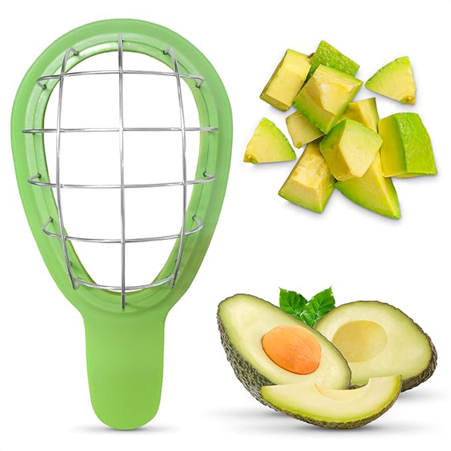 - Premium Quality Avocado Tool: Our avocado slicer and chopper is made of premium quality stainless steel and PP material. This avocado masher is safe and made of food graded material. The inner smart slicer wires of this vegetable chopper is corrosion resistant, and not easy to bend or break. This avocado stuff stainless steel knife set is not fade the color for a long time.