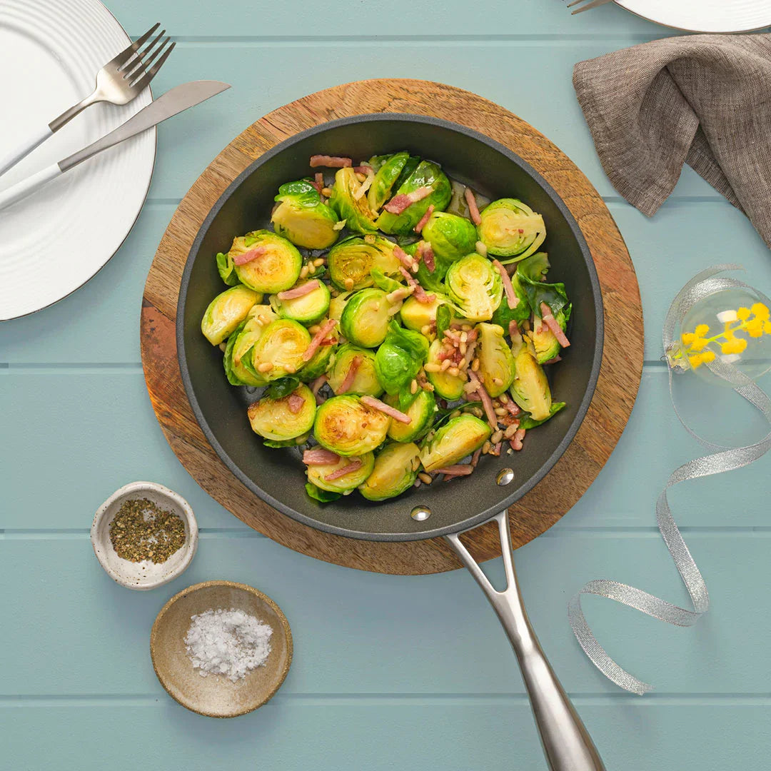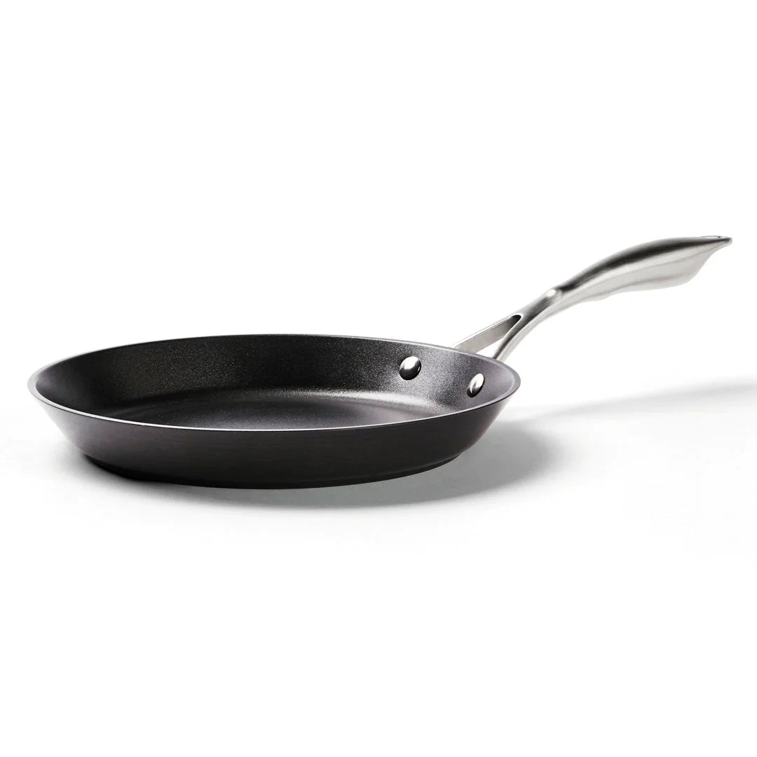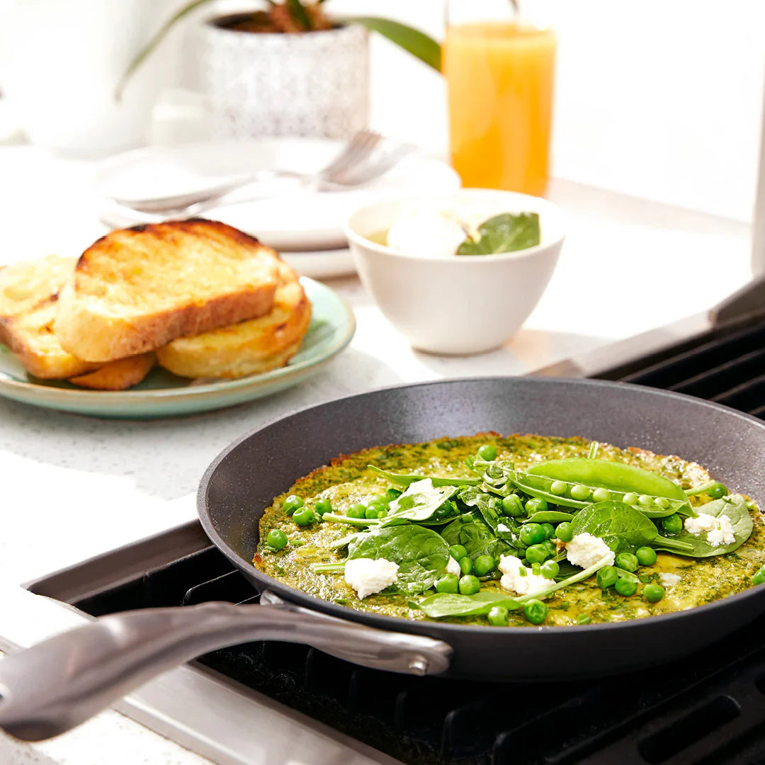 The 24cm fry pan is an essential cookware item for every kitchen. Your most versatile sized pan, the 24cm fry pan diameter leaves plenty of room for all your favourite recipes and can also be placed in the oven. The Chef Series II is a premium range of cookware that provides superior performance and durability for novice and experienced chefs. The anodised aluminium material on the 24cm frying pan is harder than steel and heats very quickly and evenly for impressive cooking results. The anodization process creates a non-stick coating that better resists flaking or peeling, and an encapsulated base ensures better heat retention with no hot spots throughout cooking.