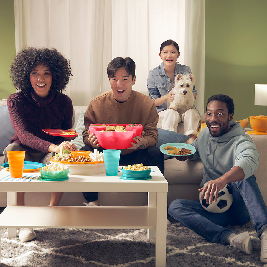 - Nacho average party: Tortilla chips in the Chip Bowl, salsa, queso, guacamole or sour cream in the Dip Bowls, or a variety of different toppings in the serving tray for your guests to make their own nachos.