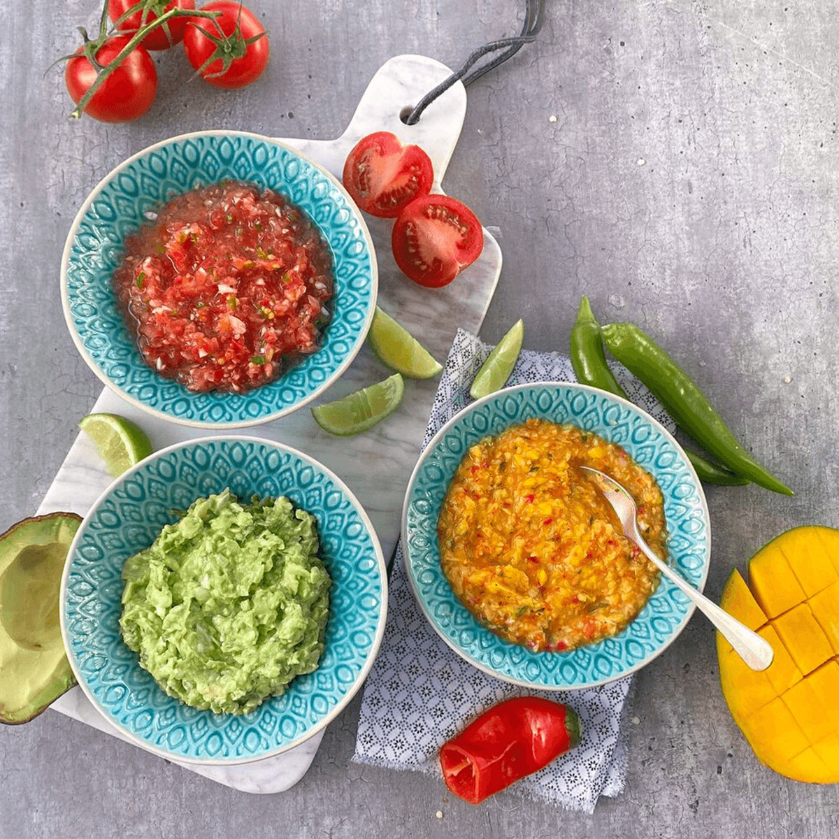 - Dips, sauces and spreads: salsa, guacamole, mayonnaise, sambal, compound butter, hummus, tapenade, chicken dip…