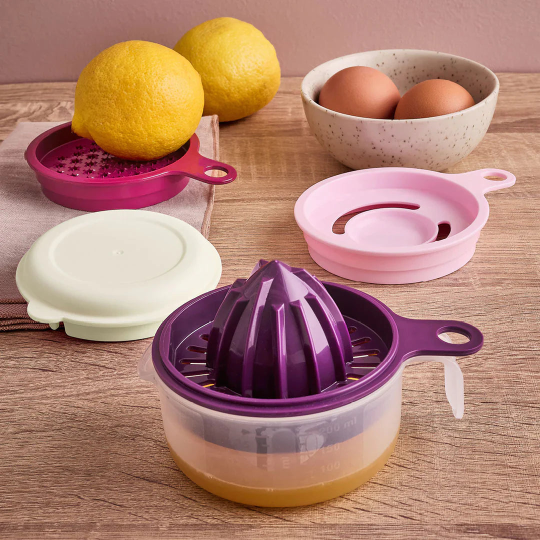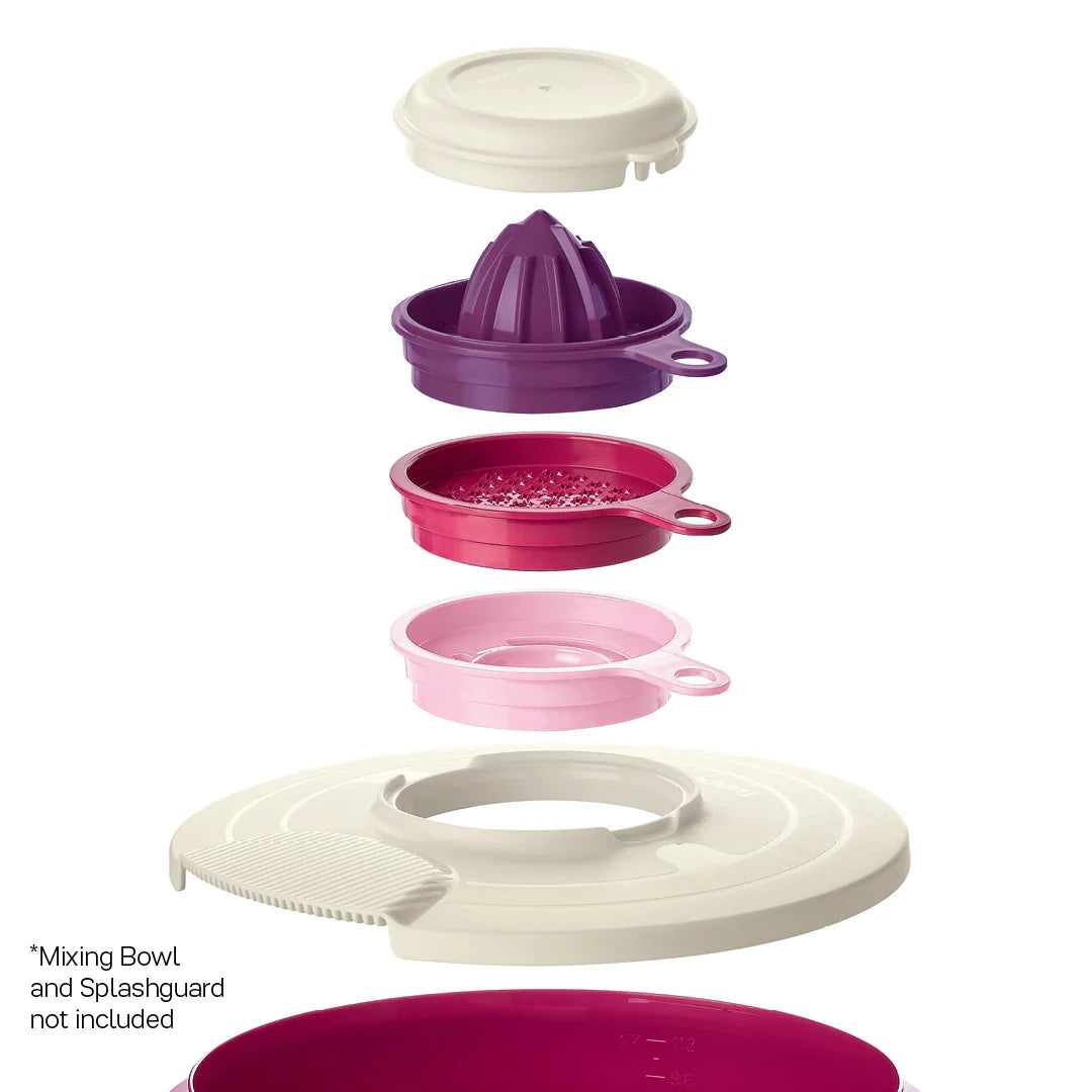 This handy all-in-one kitchen assistant helps you save time by grating, zesting, juicing or separating eggs directly into your EZ Shaker, EZ Mix N Pour and the Ultimate Mixing Bowls. This adaptable multi-functional tool saves you time and dishes. This means you can whip up your own individual cocktails, cake batters, mayonnaise, and so much more delicious goodies to share.