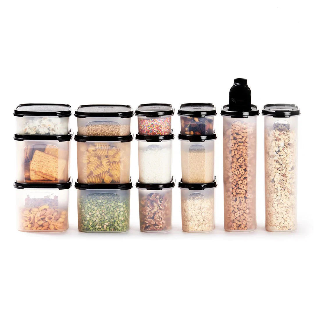 Instantly see the contents with this Pantry Stacker Set. Lightweight, scratch and stain resistant containers lock in freshness. Kids can help themselves to snacks when their faves are in one place. Your shelves never looked better!