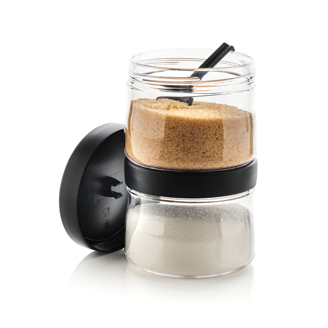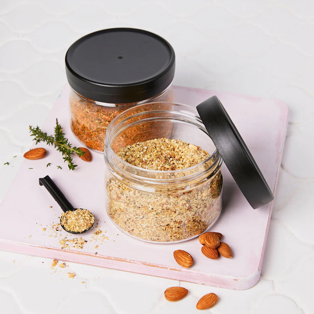 Buy spices in bulk and store it in style using this Counterscaping Set. These durable, glass-like containers will look stylish sitting on your countertop or in your pantry. Featuring a spoon that clips inside the lid of the container, ensures you have quick access to a serving tool. Perfect for storing salt and pepper or your favourite spices, herbs and seasonings!