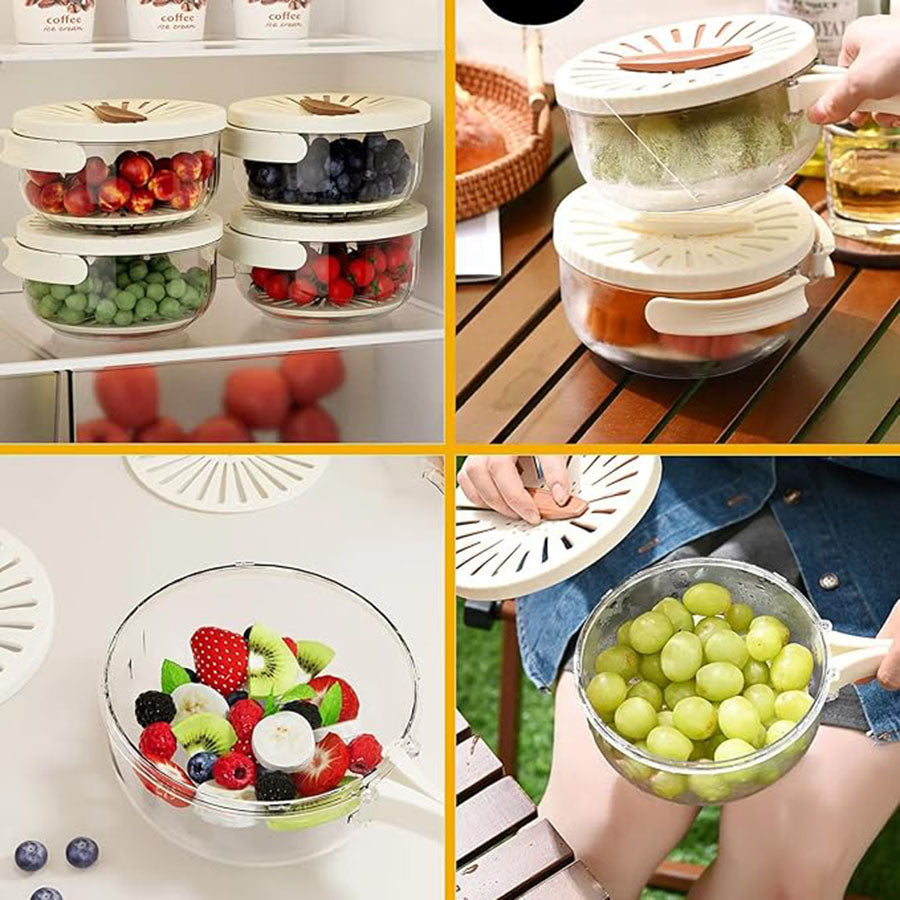 Draining Basket with Lid The hidden foldable handle makes it easy to carry for picnics or outdoor use, while its compact size saves space in your fridge, perfect for storing berries or other small fruits. - Premium Materials: