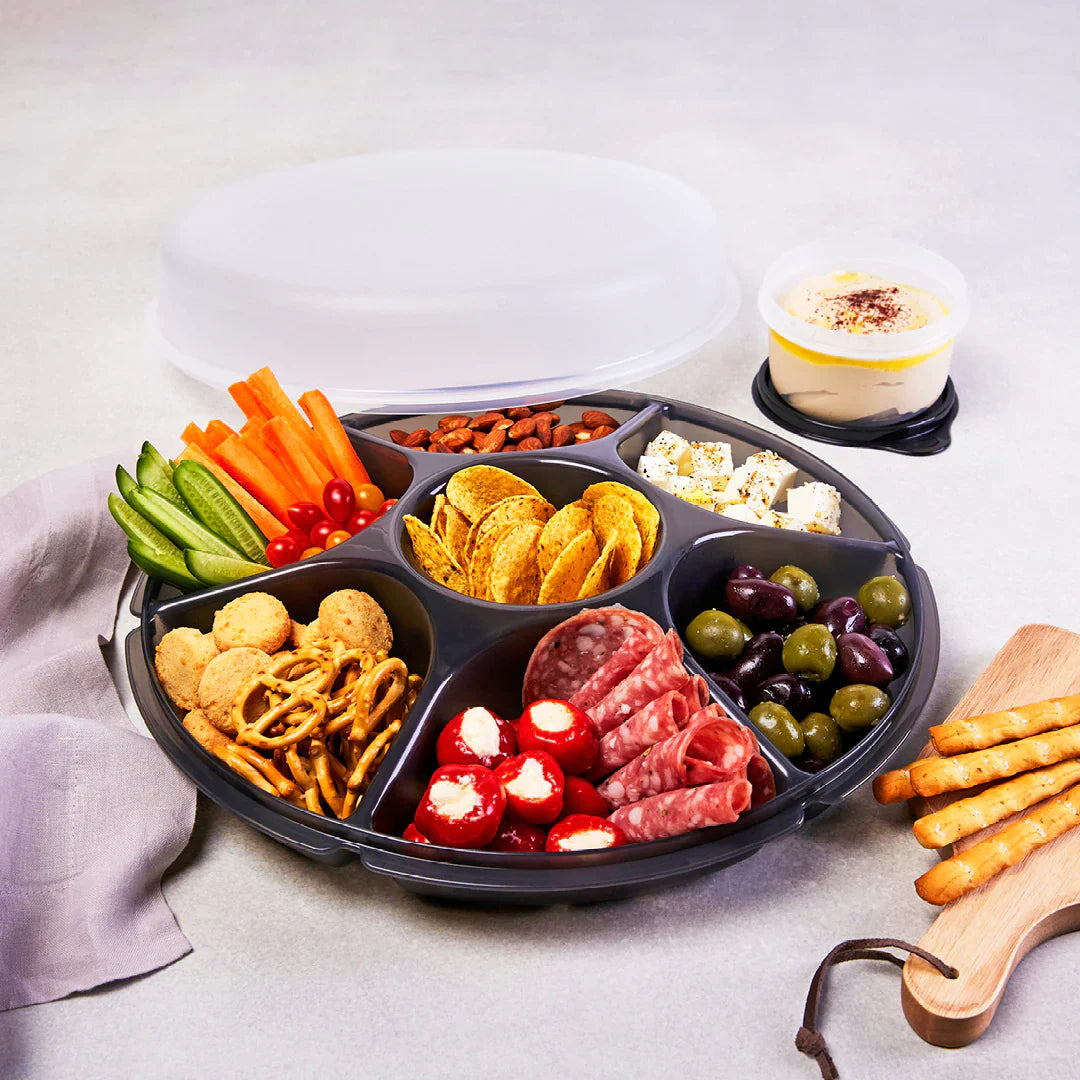 - Organized: with separate compartments and a centre removable bowl on the large will keep all your contents neat and organized. Great for separate storage of fruits, nuts, cheese, deli items with a dip in the centre.