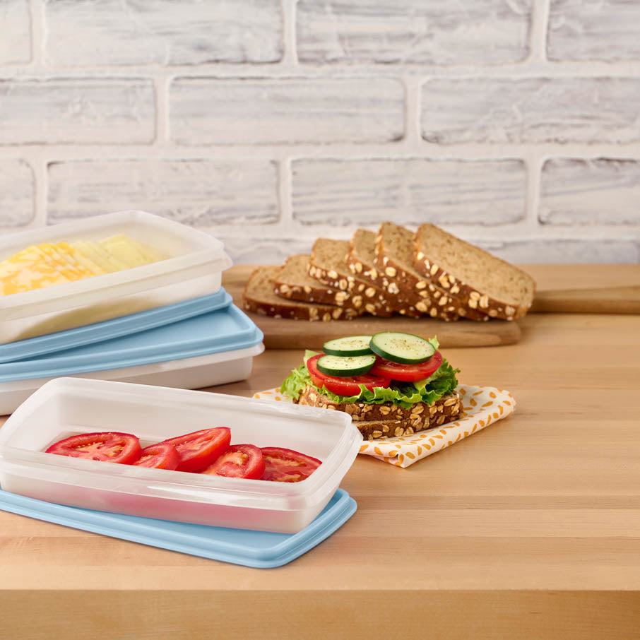 Store deli meats in separate containers, then set out for an easy weeknight sandwich buffet. Set of three with seals. 2½ cup/640 mL. 9.5 x 5.6 x 1.7"/24.2 x 14.3 x 4.3 cm.