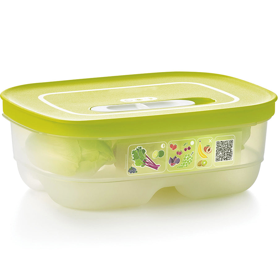 - Optimal storage conditions: 3-position slider adapts vent in lid to various vegetables and fruits and works with airflow pattern in base.