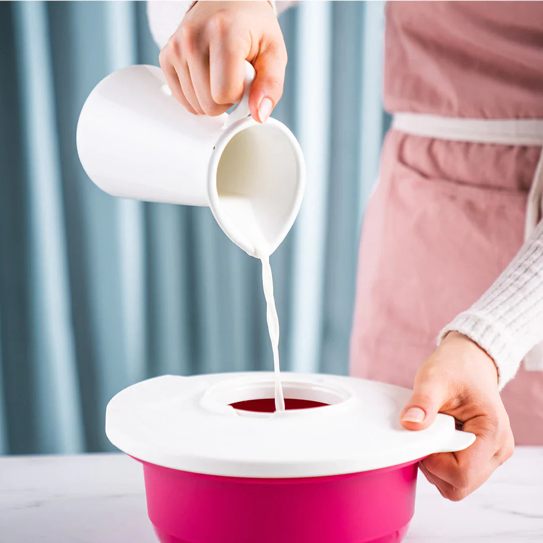 - Remove the inner cover and use the open space for mixing preparations with an electric hand mixer or hand blender while keeping your countertop spotless!