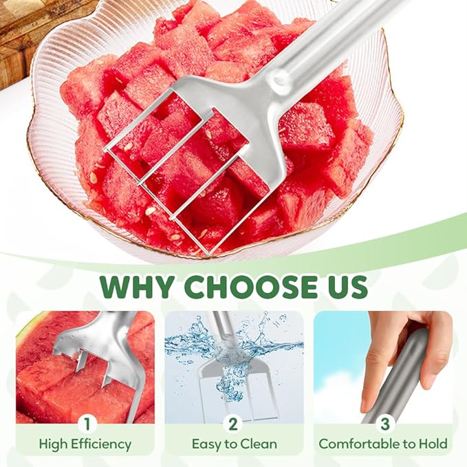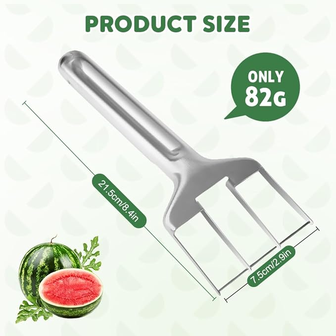 - 【Sturdy Stainless Steel Construction】 This Watermelon Fruit Slicer Cutter Tool features a sturdy stainless steel handle and robust stainless steel cutting edge, ensuring durability without bending or warping. As essential kitchen gadgets for fruit lovers, this watermelon cutter slicer tool maintains peak performance through repeated use. The premium stainless steel mango cutter tool resists corrosion while providing reliable watermelon slicing capabilities for all your kitchen needs.