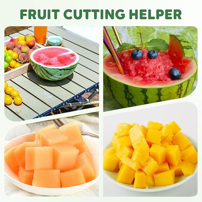 - 【Precision Cutting Performance】 The multi-blade watermelon slicer cutter tool delivers uniform slices with every use, enhancing food presentation. This professional-grade fruit cutter slicer ensures consistent results whether making watermelon wedges for parties or mango slices for salads. The ergonomic mango cutter tool design makes it perfect kitchen gadgets for both home cooks and camping enthusiasts.
